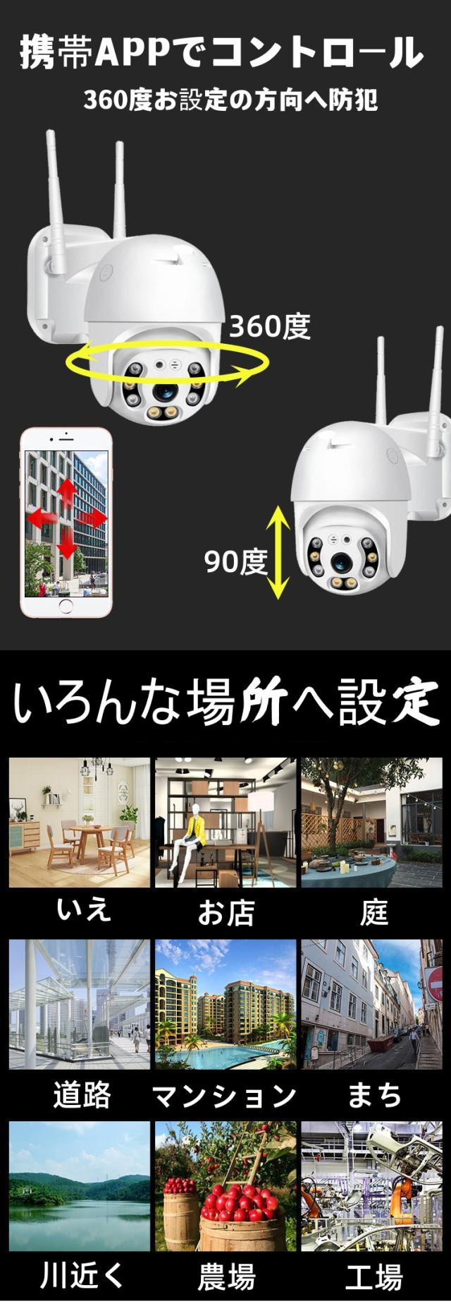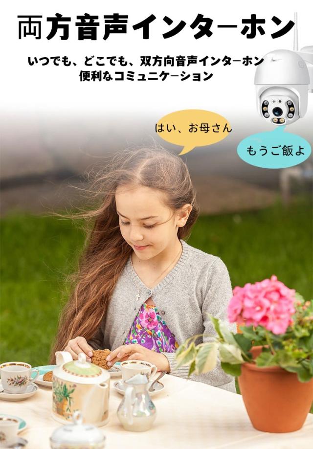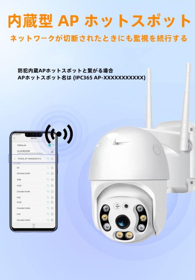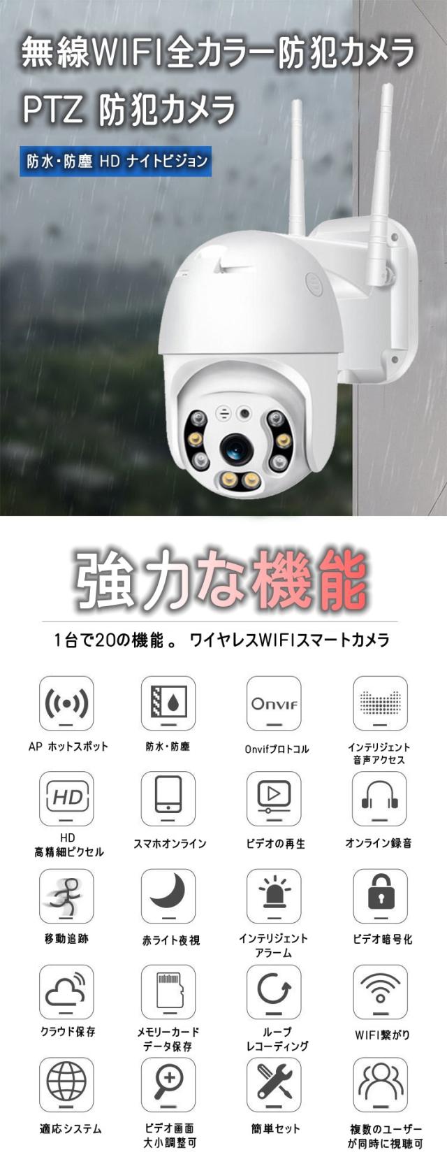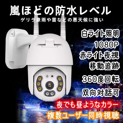 嵐レベル防水防塵カメラ 多機能360度回転防犯カメラ1080p画質150°広角WIFI機能付き遠隔監視動き検知 暗視機能+昼カラーライト機能付き 屋内/屋外防犯カメラと監視カメラ