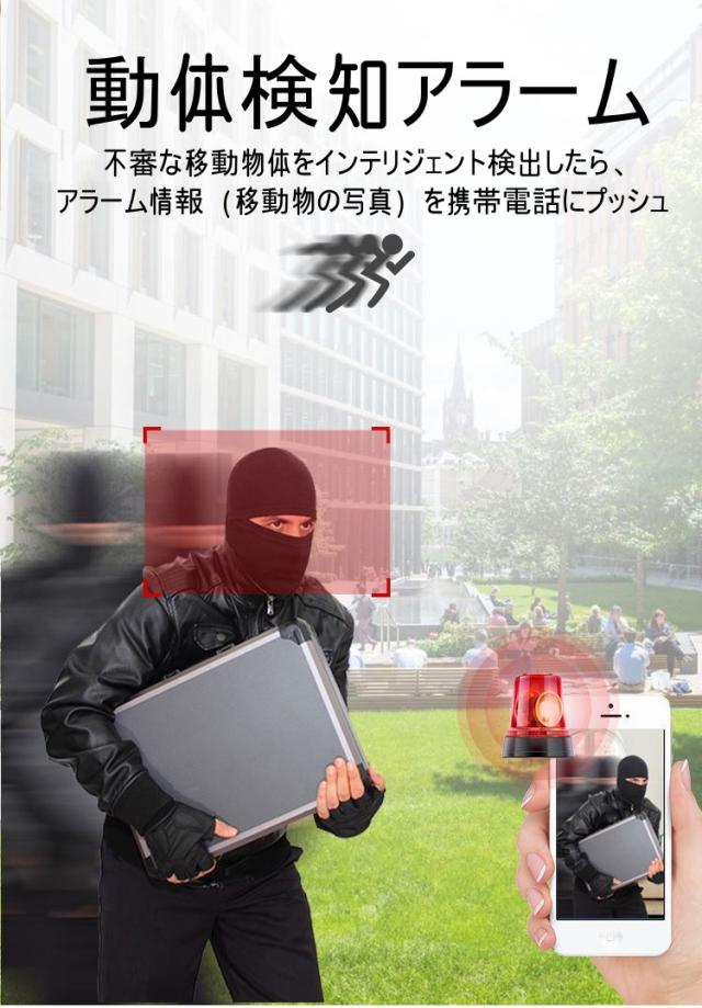 部屋内/部屋外兼用、昼カラーライト付き(白ライトで夜でも全彩画像に変更)防犯カメラと監視カメラ