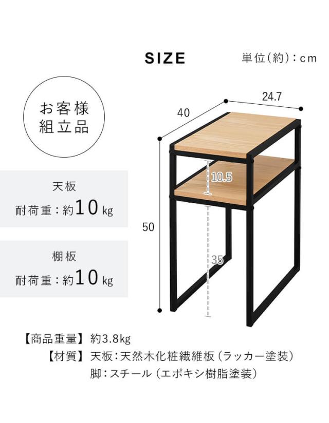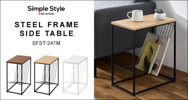 サイドテーブル スチールフレームサイドテーブル SFST-247 2段 棚付き テーブル スチールフレーム スチール脚 突板 コンパクト リビング 寝室 おしゃれ ベッドサイドテーブル ベッド ベッド横 北欧 アイリスオーヤマ 送料無料