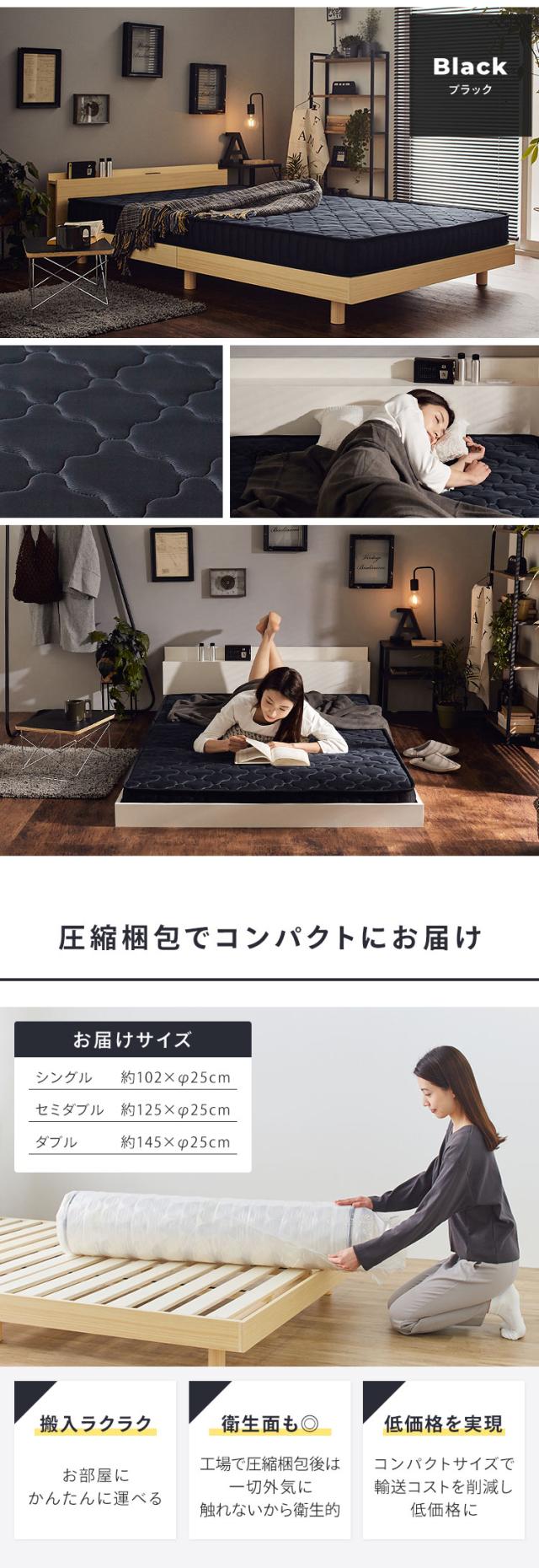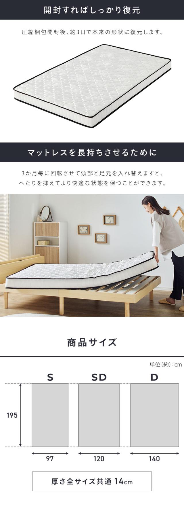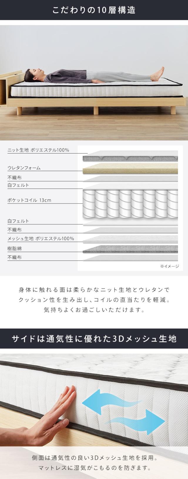 ポケットコイルマットレス 14cm S PKMT14N-S 全2色 マットレス ポケットコイル ベッド 寝具 10層構造 通気性 シングル 体圧分散 圧縮梱包 新生活 送料無料