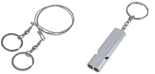 | ワイヤーソー ポケットにも入るコンパクトなのこぎりです。こぶしサイズの木もスイスイ切れます。 | ホイッスル アルミニウム合金製のホイッスルの音は、120dbに達する高周波の双管の設計で、遠くまで届き発見されやすいです。 |