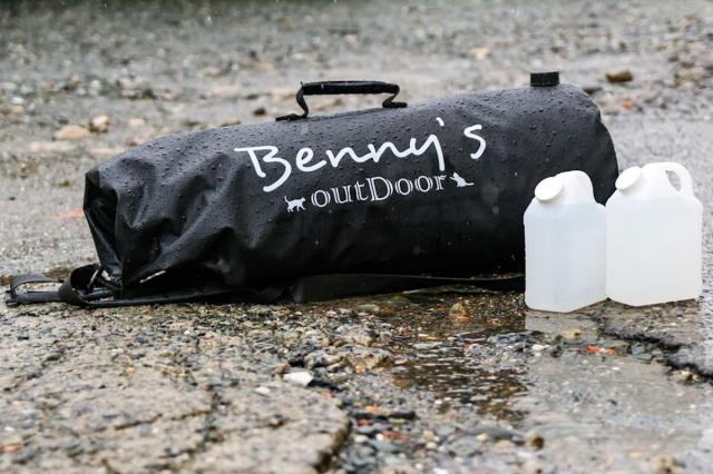 素材はゴムボートにも使われる500Dターポリンを使用しています。耐久性と防水性を兼ね備えた、レジャーや災害時の強い味方です。