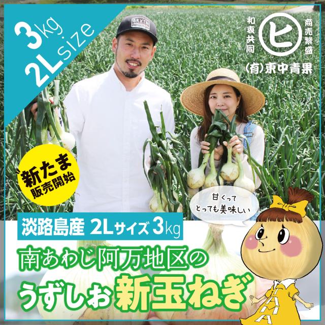 新玉販売開始3月下旬から順次発送! 淡路島産 新玉ねぎ【うずしお新玉ねぎ 2L 3kg】東中青果 うずしおファーム