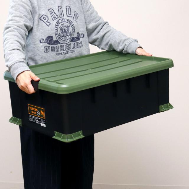 日用品や工具などを収納しておくのに便利な収納ボックスです。細かいものをざっくり入れてもフタを閉めることで生活感を隠すことができます。ミリタリーテイストなデザインでリビングやキッチンなど見えるところに置いてもスタイリッシュさを保てます。