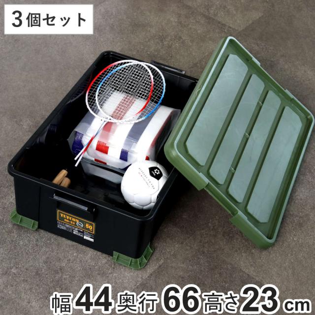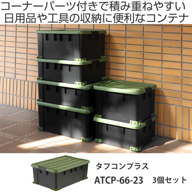 収納ボックス 3個セット Nタフコンプラス ATCP-66-23 フタ付き 幅44×奥行66×高さ23cm ( 収納ケース 頑丈 収納 工具箱 コンテナ 丈夫 ロック付き 日本製 屋外 積み重ね スタッキング プラスチック ボックス ケース アウトドア )