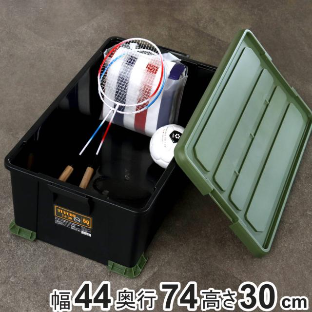 《 LH12341 ハードコンテナ ふた付き ふた 蓋 フタ 付き 緑 黒 ブラック グリーン カーキ 色 釣り道具 釣り 道具 道具箱 工具 ガーデニング 用品 グッズ カー収納 車 ガレージ 車庫 おすすめ しっかりした作り 持ち運び 持ち運べる 小物入れ 小物収納 キャンプ 約 幅 44 奥行 74 高さ 23 cm センチ 大きい 大容量 深型 》