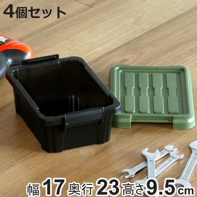 収納ボックス 4個セット Nタフコン ATC-23-10 フタ付き 幅17×奥行23×高さ9.5cm ( 収納ケース 頑丈 収納 工具箱 コンテナ 丈夫 ロック付き 日本製 屋外 積み重ね スタッキング プラスチック ボックス ケース BOX アウトドア 小物 )