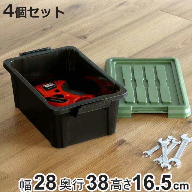 《 LH12341 ハードコンテナ ふた付き ふた 蓋 フタ 付き 緑 黒 ブラック グリーン カーキ 色 釣り道具 釣り 道具 道具箱 工具 ガーデニング 用品 グッズ カー収納 車 ガレージ 車庫 おすすめ しっかりした作り 持ち運び 持ち運べる 小物入れ 小物収納 キャンプ 約 幅 28 奥行 38 高さ 16.5 cm センチ 四個 まとめ買い 》