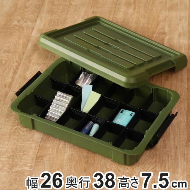 《 LH12341 ハードコンテナ ふた付き ふた 蓋 フタ 付き 緑 黒 ブラック グリーン カーキ 色 釣り道具 釣り 道具 道具箱 工具 ガーデニング 用品 グッズ カー収納 車 ガレージ 車庫 おすすめ しっかりした作り 持ち運び 持ち運べる 小物入れ 小物収納 キャンプ 約 幅 26 奥行 38 高さ 7.5 cm センチ 浅型 》