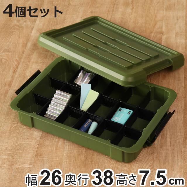 《 LH12341 ハードコンテナ ふた付き ふた 蓋 フタ 付き 緑 黒 ブラック グリーン カーキ 色 釣り道具 釣り 道具 道具箱 工具 ガーデニング 用品 グッズ カー収納 車 ガレージ 車庫 おすすめ しっかりした作り 持ち運び 持ち運べる l小物 小物入れ 小物収納 キャンプ 約 幅 26 奥行 38 高さ 7.5 cm センチ 浅型 四個 まとめ買い 》
