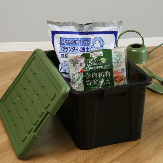 持ち運びに便利なコンテナケースは、キャンプなど屋外のアクティビティや、ガレージで使用する道具入れにするのもオススメです。フタが雨水や砂ぼこりの侵入を防ぎ、汚れてもサッと水洗いできます。