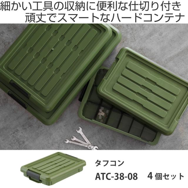 収納ボックス 4個セット Nタフコン ATC-38-08 フタ付き 幅26×奥行38×高さ7.5cm ( 収納ケース 頑丈 収納 工具箱 コンテナ 丈夫 ロック付き 日本製 屋外 積み重ね スタッキング プラスチック ボックス ケース BOX アウトドア )