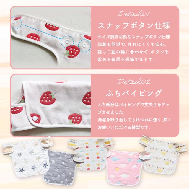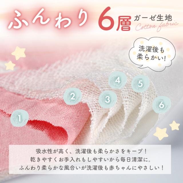 6層ガーゼで柔らかい肌触り。敏感なお肌の赤ちゃんにも安心。