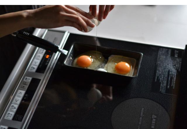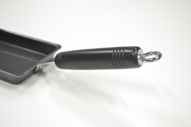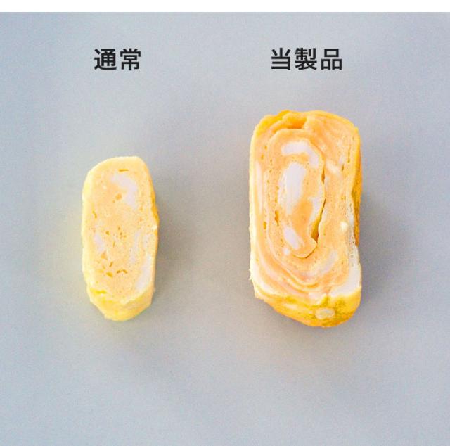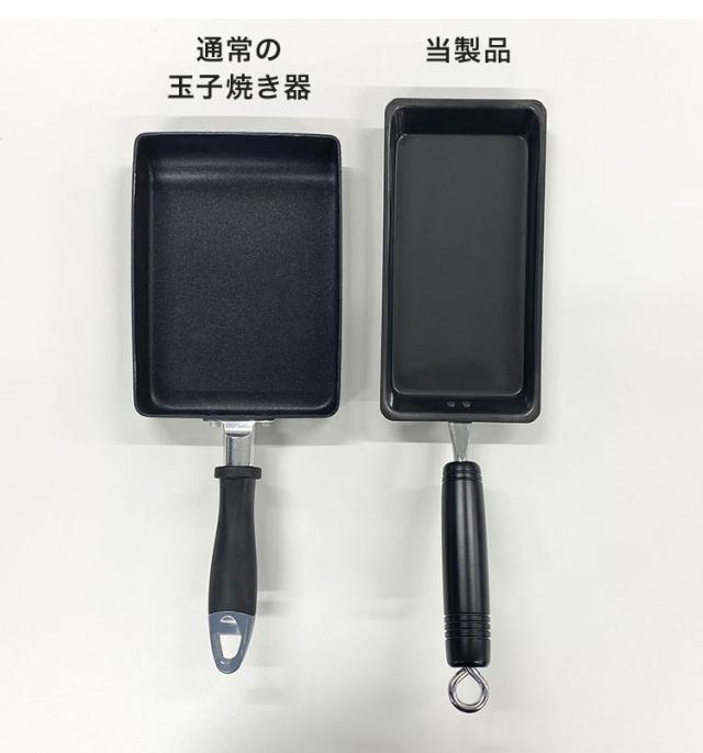 通常の玉子焼き器に比べ、幅が短く縦に長いため、卵1個でも厚みのある玉子焼きを作ることができます。