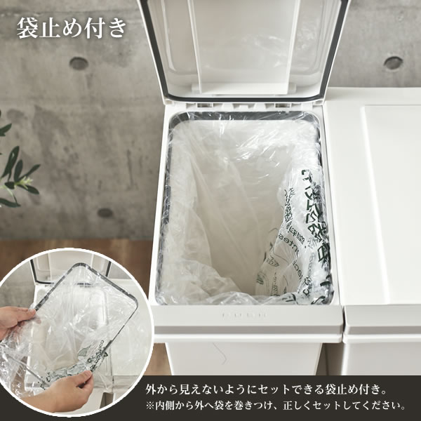 袋止め付き容器の内側にはポリ袋止めが付いており、袋が見えないように設置できます。