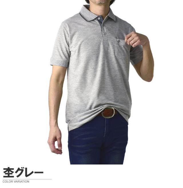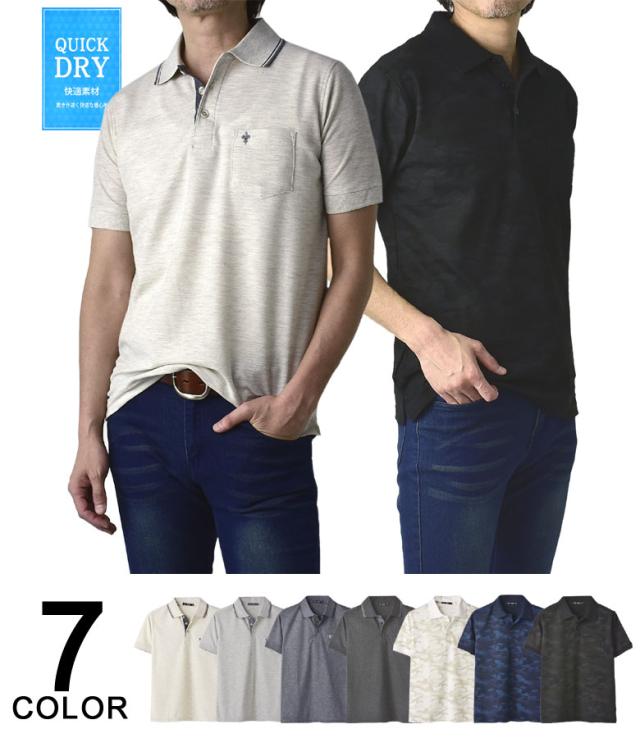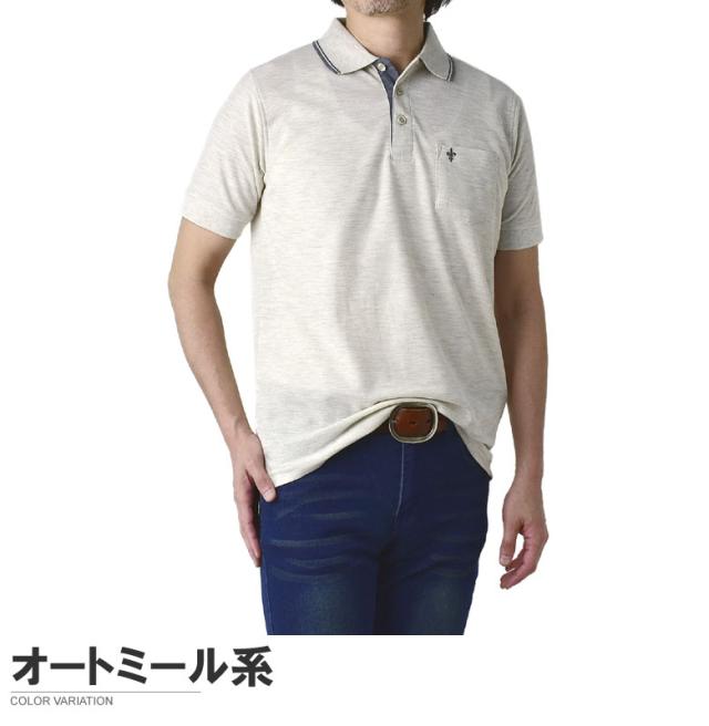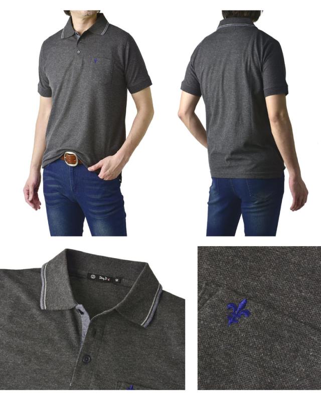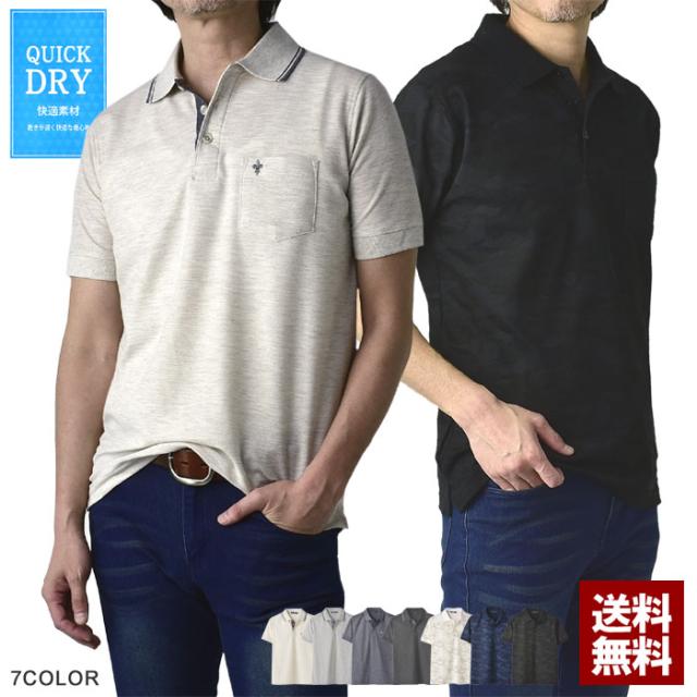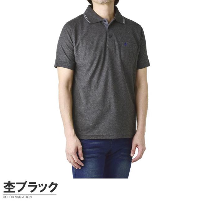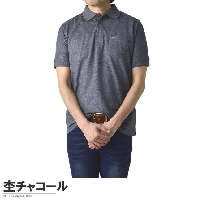 鹿の子ポロシャツ メンズ 半袖 ポロシャツ 衿ライン ワンポイント刺繍 クイックドライ トップス【A5N】【パケ1】