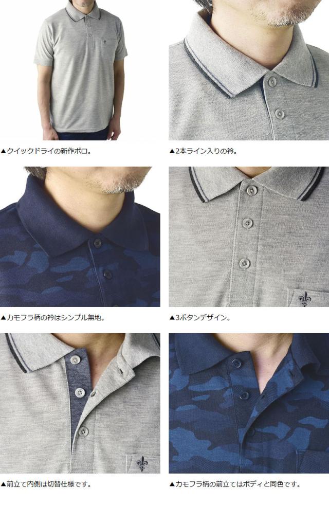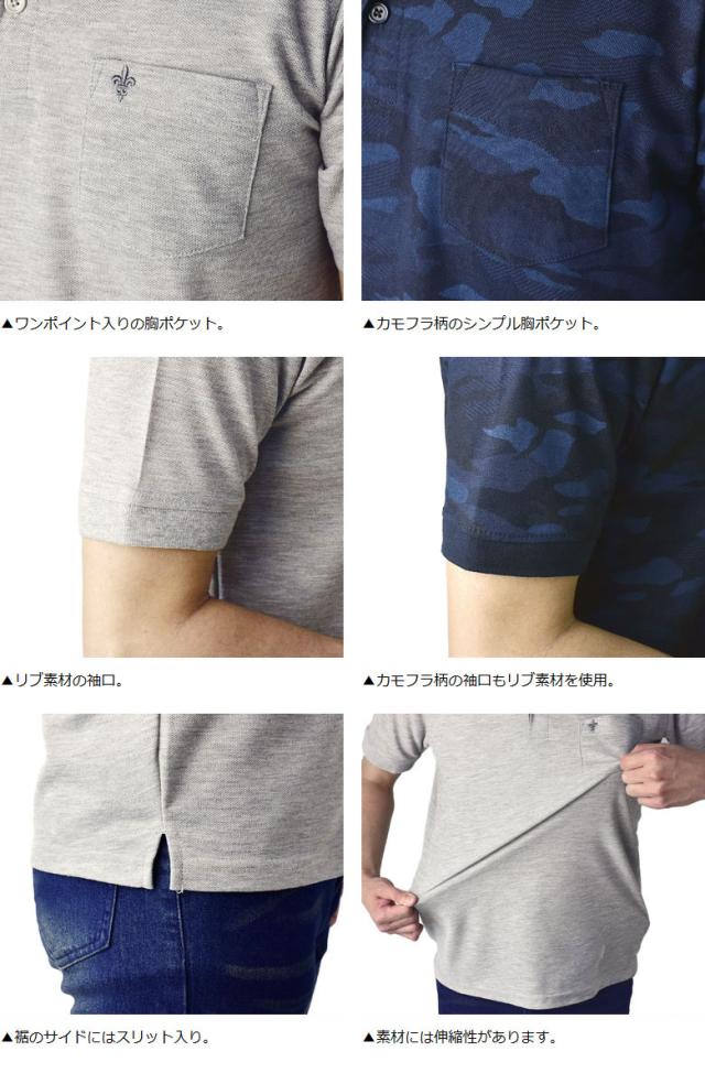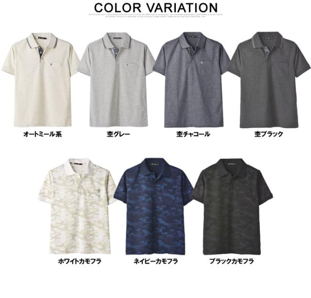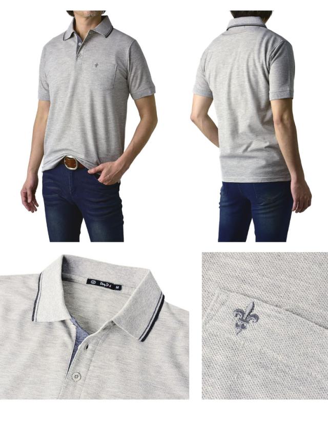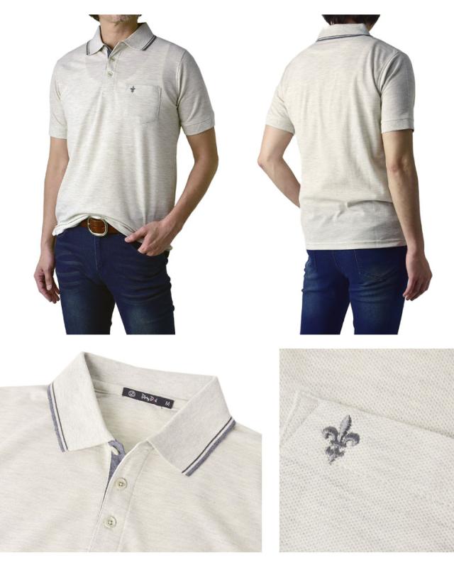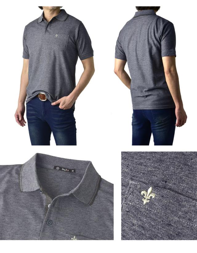 鹿の子ポロシャツ メンズ 半袖 ポロシャツ 衿ライン ワンポイント刺繍 クイックドライ トップス【A5N】【パケ1】