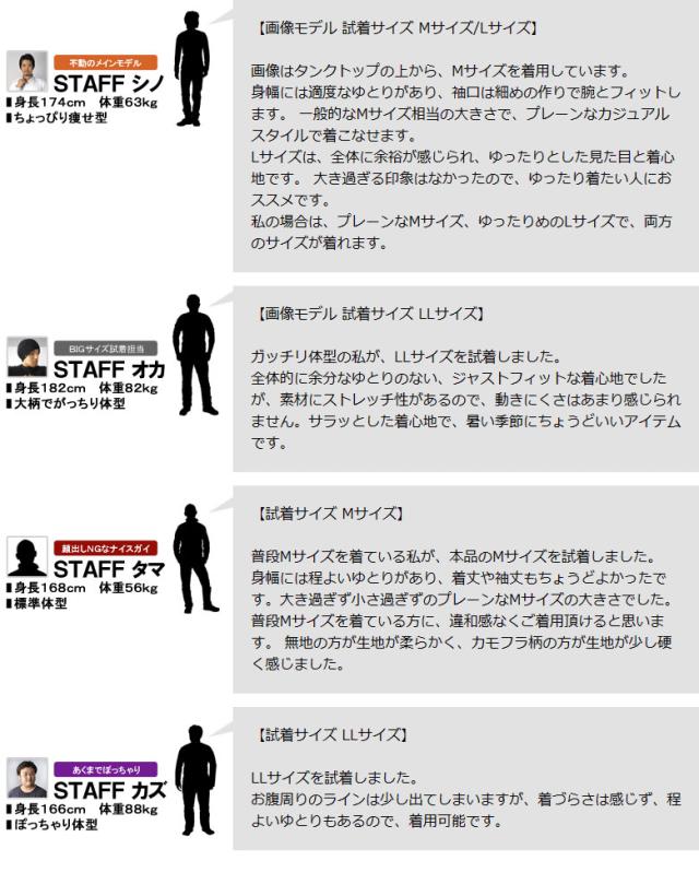 ■上記掲載画像のモデルは身長174cm・体重63kgでMサイズを着用しております。