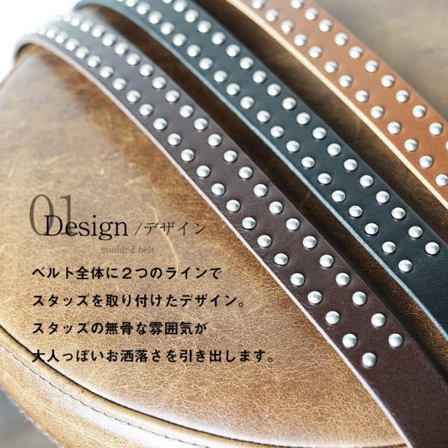 「お洒落を格上げするリアルレザー」スタッズベルト