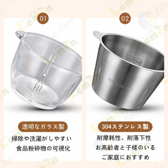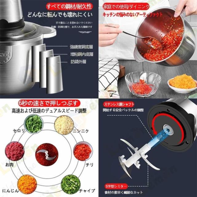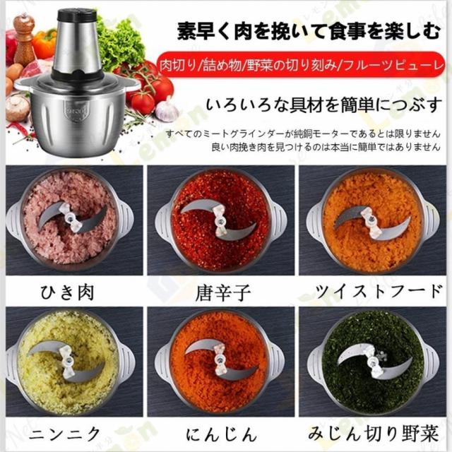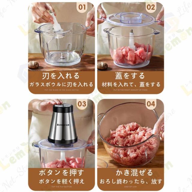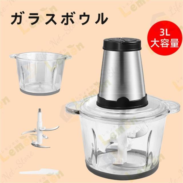 フードプロセッサー 電動 野菜チョッピング ミキサー 大容量 2L 3L ステンレス鋼刃 フードチョッパー 肉チョッパー みじん切り器 ステンレス鋼 ガラス 敬老の日