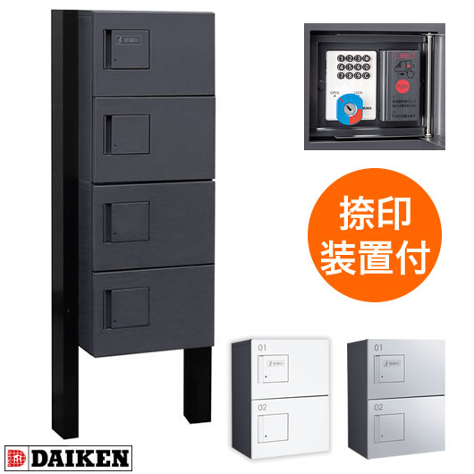ダイケン 宅配ボックス ポールセット TBX-F1SSN-G+TBX-F1SS-G+TBX-PZ 前入れ前出し ダークグレー色 プッシュボタン錠 捺印装置付