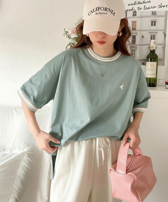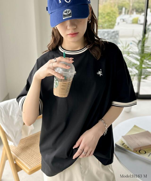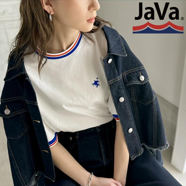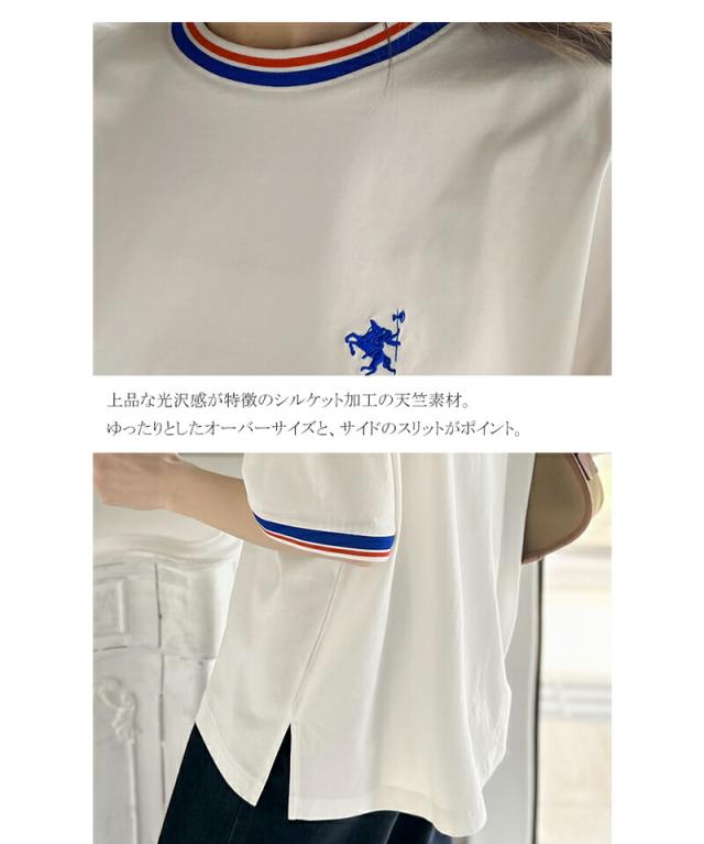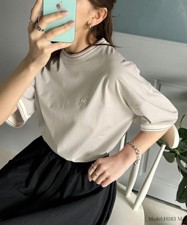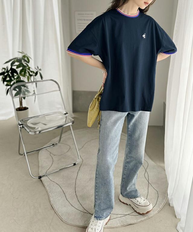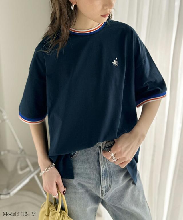 ★《JaVa ジャバコラボ》大人スポーティー。綿100%シルケット 配色刺繍Tシャツ★