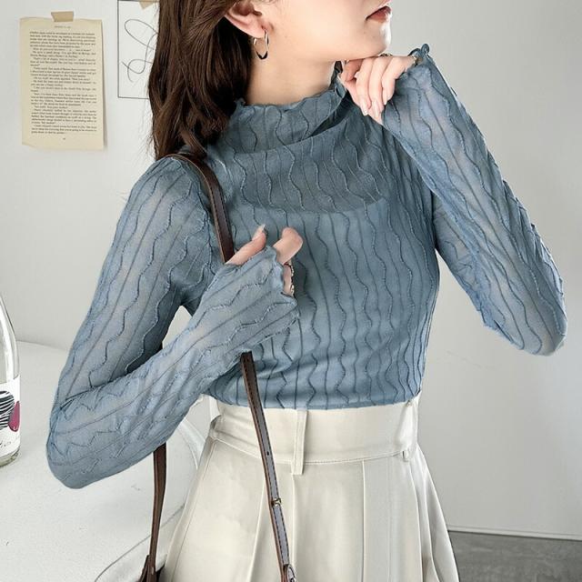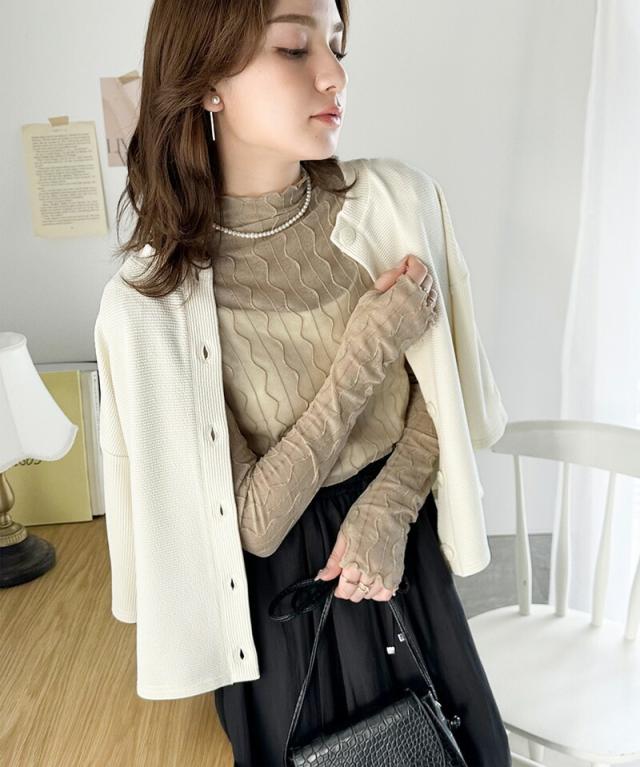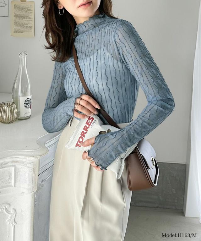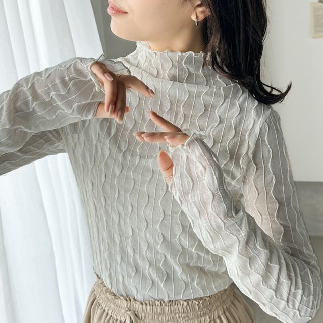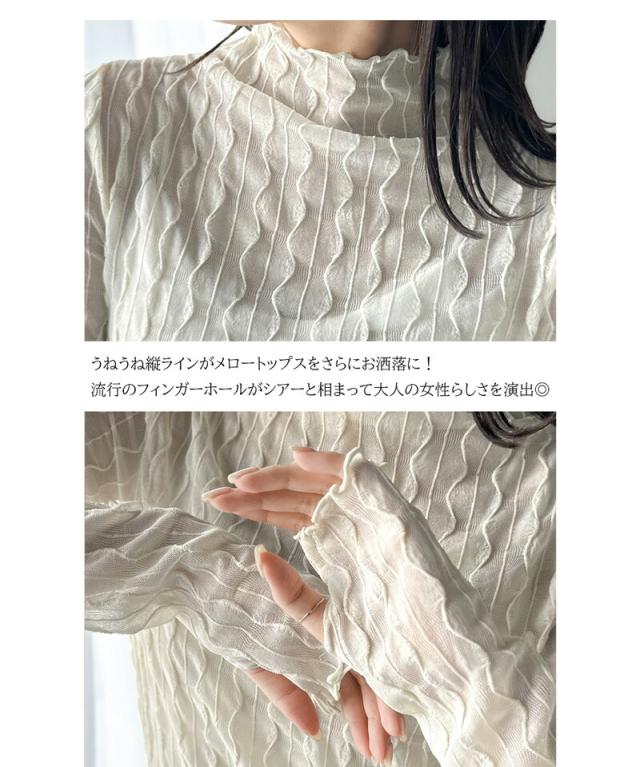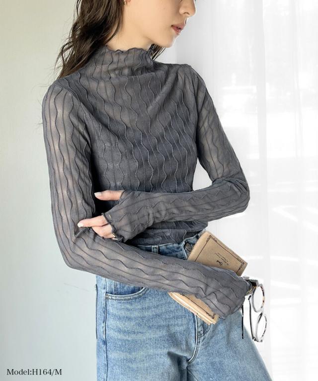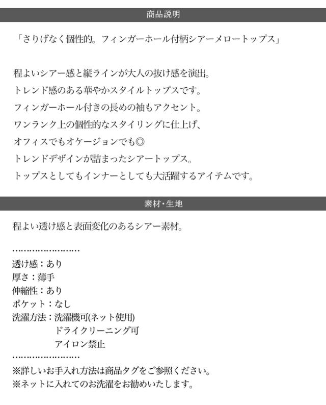 ★さりげなく個性的。フィンガーホール付柄シアーメロートップス★