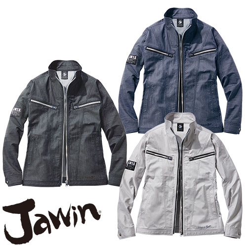 デニム調のストレッチ素材を使用しライダースジャケットテイストのデザインに仕上げたJawinの新シリーズ
