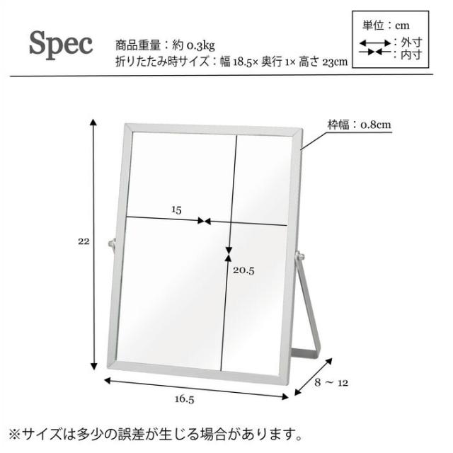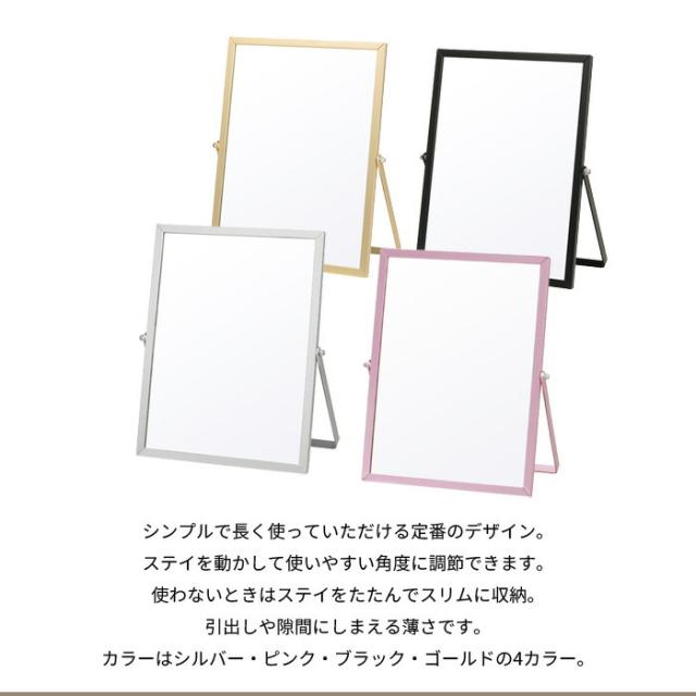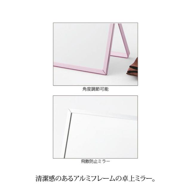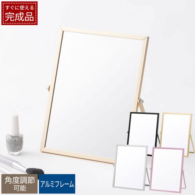 【値下げ】卓上ミラー アルミフレーム おしゃれ 角度 調整 鏡 スクエア 飛散防止 シンプル