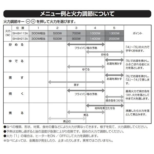 ■ヒーター:消費電力:2000W/火力調節:300W相当〜2000W 5段階