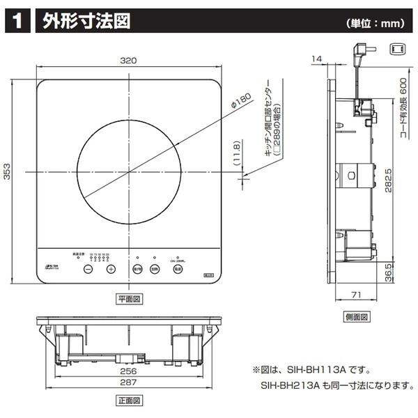 在庫あり ビルトイン1口IHクッキングヒーター 三化工業 SIH-BH213A 単相200V 幅32cm ビルトイン 上面操作タイプ ブラック