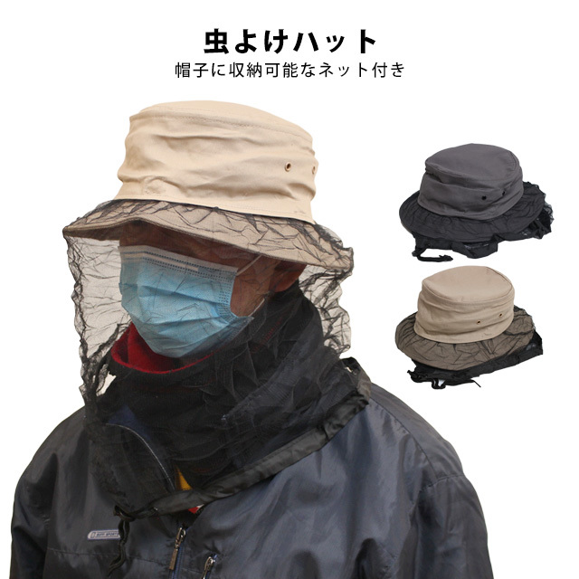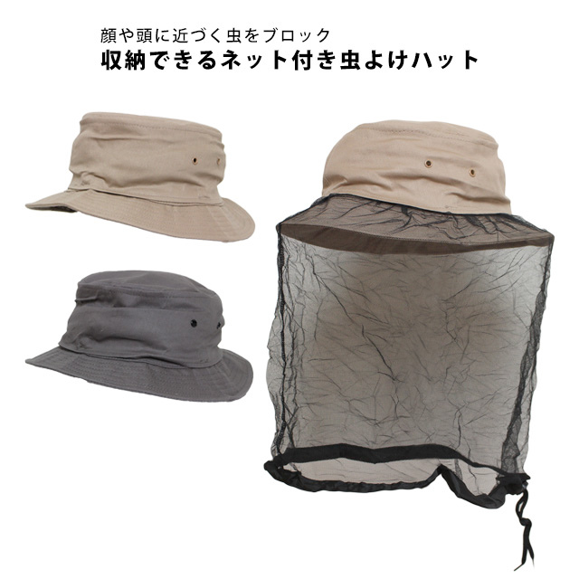| 虫よけハット 虫除け 防虫 帽子 ネット付き 大人 メンズ レディース ネット収納式 サファリハット |