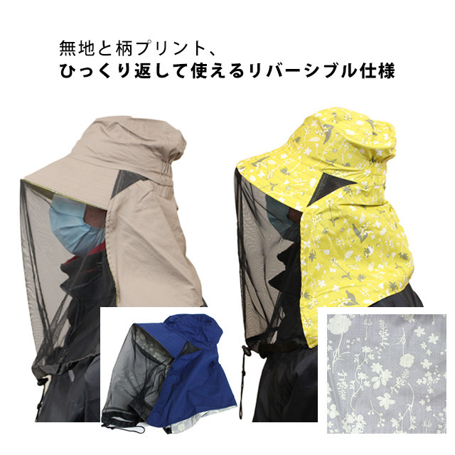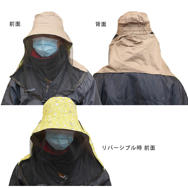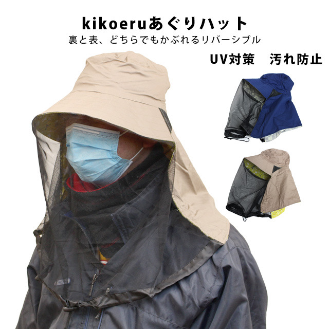 虫よけハット 防虫 帽子 日焼け対策 ネット付き 大人 レディース リーバーシブル kikoeruあぐりハット サファリハット