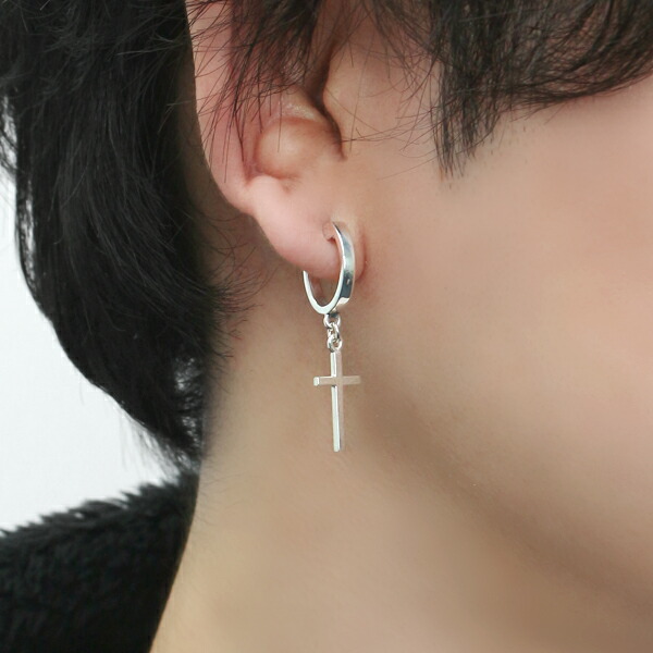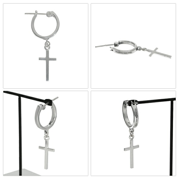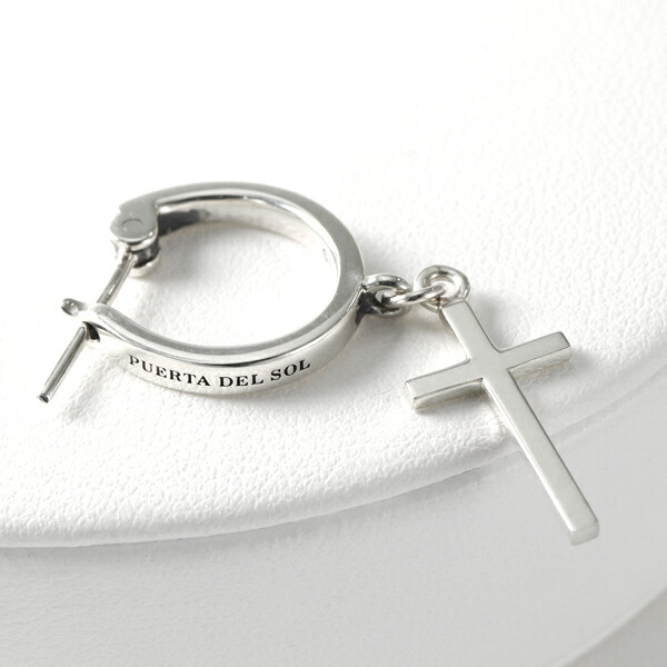 PUERTA DEL SOL 揺れる クロス フープピアス 1P 片耳用 ピアス シルバーアクセサリー シルバー950 チタン 十字架 シンプル 存在感 きれいめ 上品