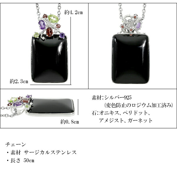 ・素材 オニキス、ペリドット、ガーネット、アメジスト、シルバー925(変色防止のロジウム加工済み)