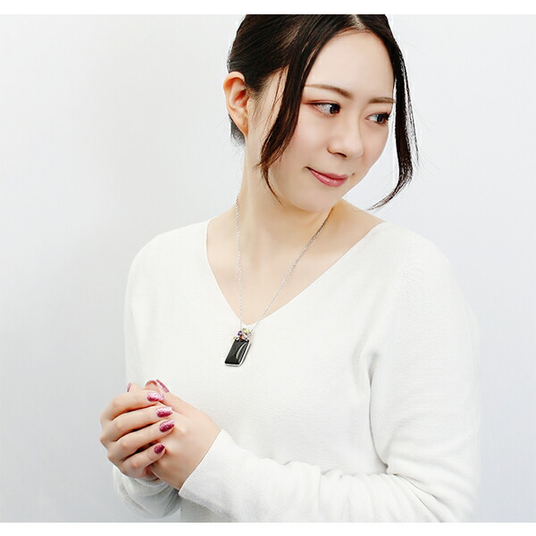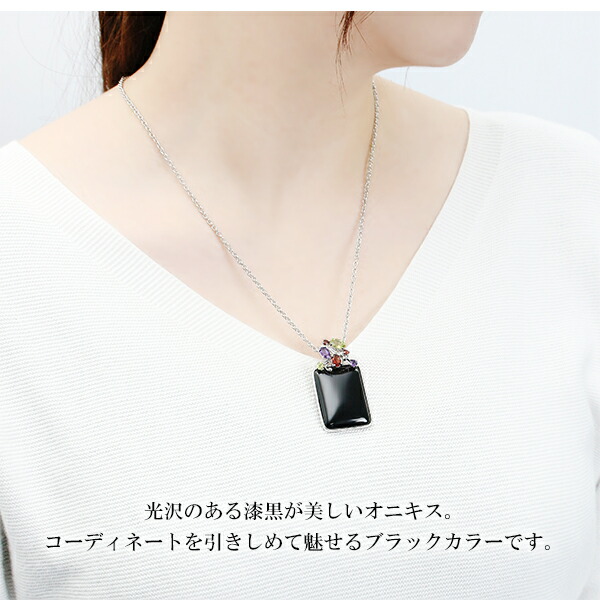 オニキス シルバー ネックレス 大粒 スクエア チェーン付き 天然石 パワーストーン ペンダント レディース ペリドット アメジスト ガーネット