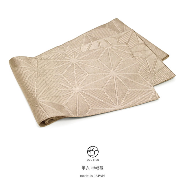 浴衣 帯 半幅帯 ベージュ 麻の葉 半巾帯 細帯 単衣 女性帯 浴衣帯 浴衣用 袴用 小紋用 紬用 着物用 日本製 メール便