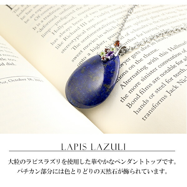 ボリュームのある雫型のラピスラズリを主役に、優雅なデザインに仕上げたペンダントトップです。