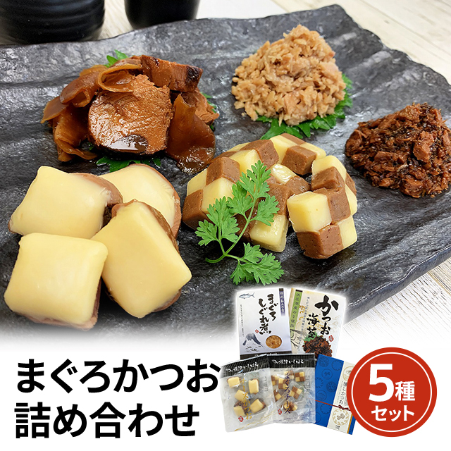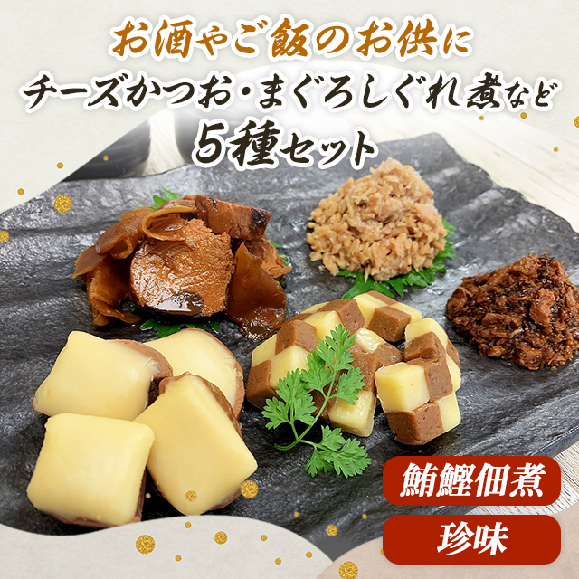 ・オリジナルの鮪鰹佃煮や珍味を、5種セットでお届けします。