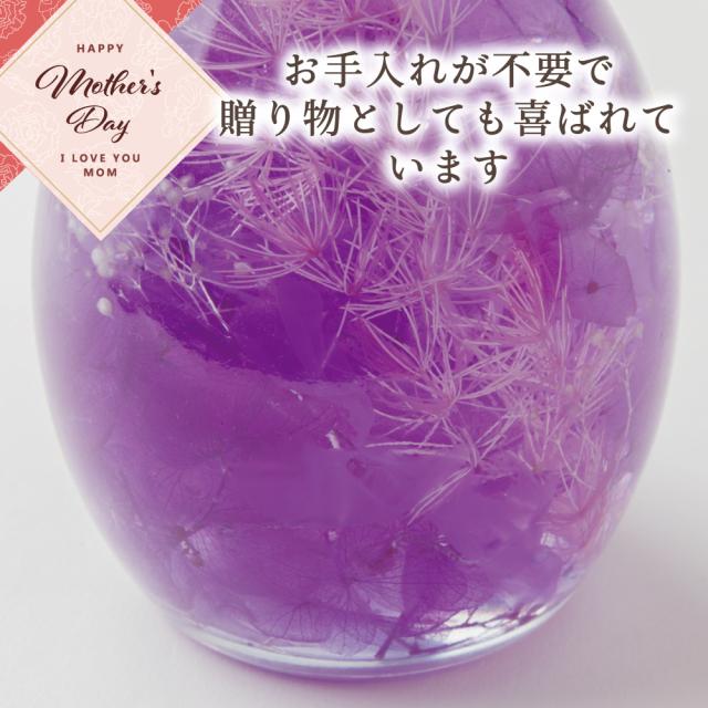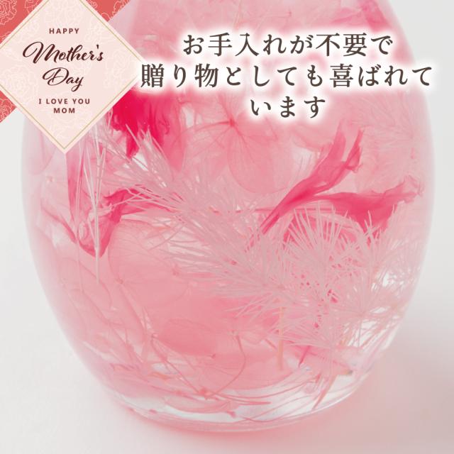 枯れることのないプリザーブドフラワーを使用しており、季節に関係なく綺麗な状態で飾ることができるので母の日ギフトにぴったりです。