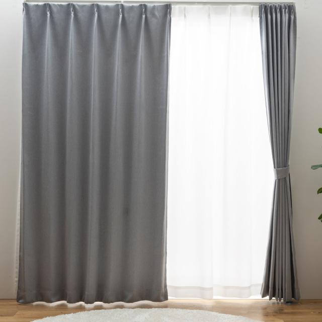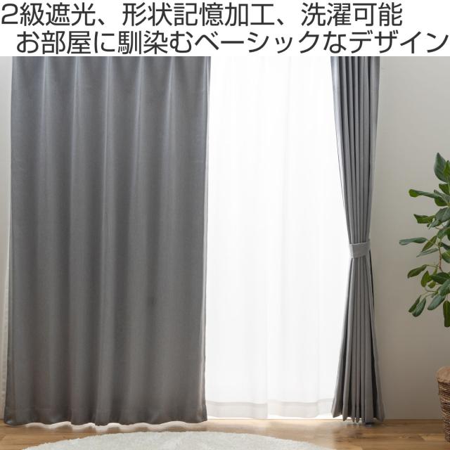 カーテン 2級遮光 形状記憶カーテン 幅100cm×丈105〜200cm(2枚組)・幅150×丈178cm(1枚)・幅200×丈178cm(1枚)グレー ( ドレープ 遮光カーテン 既製 間仕切り 窓 目隠し 遮光 形状記億 ウォッシャブル 無地 シンプル )