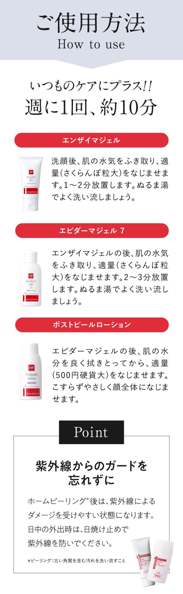 | 商品名 / 内容量 | ▼ポストピールローション:120ml×2 ●配合成分につきましては、上記の商品名をタップしてご確認ください。 |