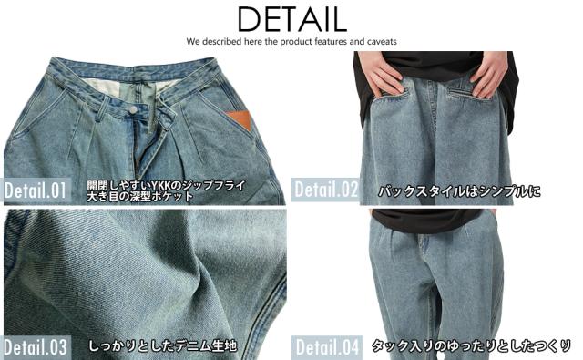 オールシーズンOKなタック入りのデニムパンツ!!! 薄めの色落ちがちょうどいいワイドな仕上がりのデニムとなっております。 普段着、ダンスなどでもかっこよく着こなせます。 腰回りから裾に向かってワイドに緩いカーブが特徴でオールドスタイル好きな方に 是非履いて頂きたいデニムです。 生地は厚すぎず、動きやすさもあり年中活躍出来ます。 | |