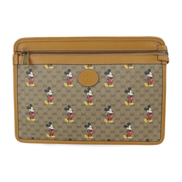 新品未使用展示品 GUCCI グッチ ディズニーコラボ ミッキー ミニGGスプリーム 602552 セカンドバッグ PVC レザー ブラウン系 クラッチバッグ ポーチ 【本物保証】