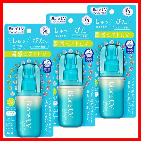 3個セット】ビオレUV アクアリッチ アクアプロテクトミスト 60ml KAO 花王 BioreUV 日焼け止め UV対策 顔・全身 SPF50 PA++++ スーパーウォータープルーフ 紫外線 まとめ買い