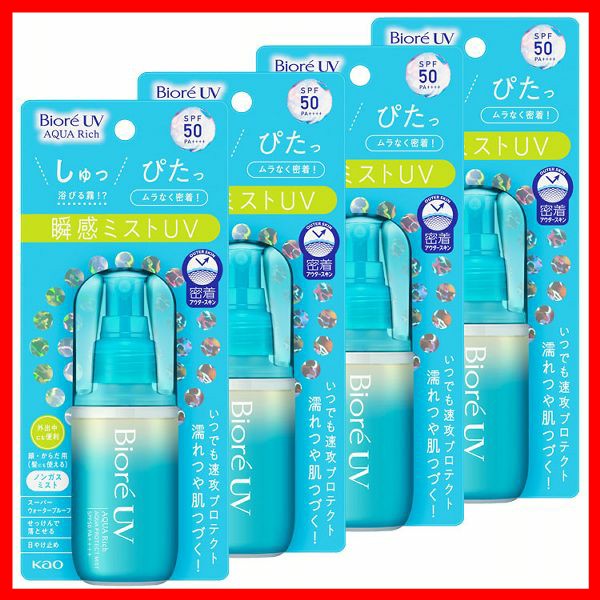 【4個セット】ビオレUV アクアリッチ アクアプロテクトミスト 60ml KAO 花王 BioreUV 日焼け止め UV対策 顔・全身 SPF50 PA++++ スーパーウォータープルーフ 紫外線 まとめ買い