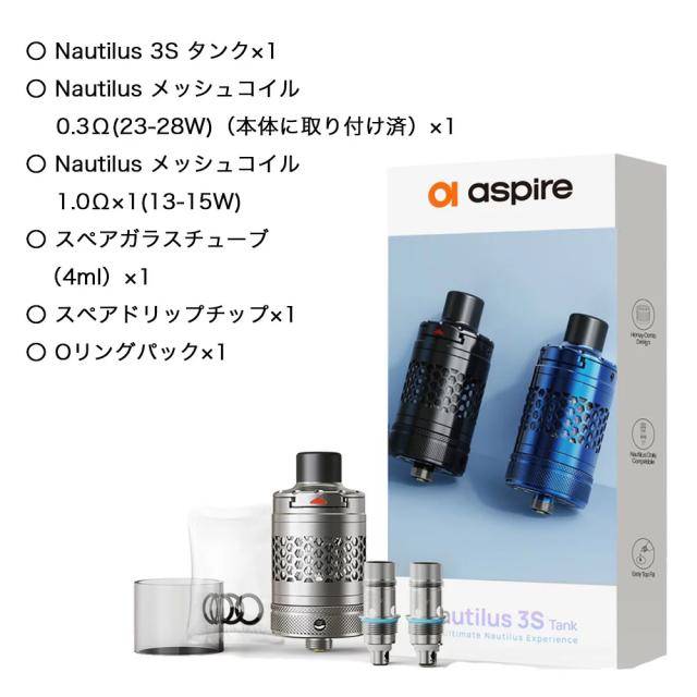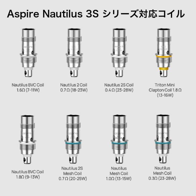 Nautilus 3S タンクは AspireのBVCシリーズの全ての