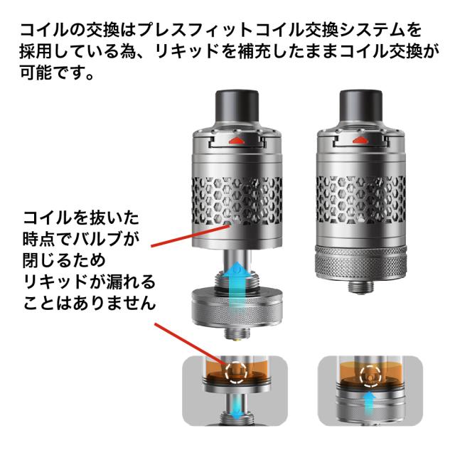 採用している為 リキッドを補充したままコイル交換が可能です。