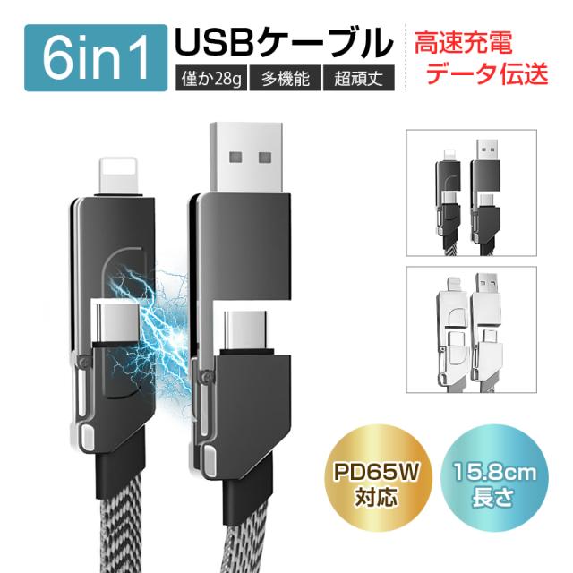 そんなトラブルにあったことがある方にオススメのは、この万能6in1 USBケーブルです。