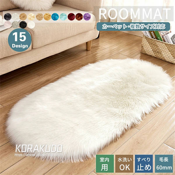 ラグ フェイクファー 60*90CM 長毛 敷物 楕円形 暖かい マット カーペット 絨毯 秋冬 リビング ベッドルーム フロアマット シャギーラグ ベッドサイド かわいい 暖かい 屋内 室内 北欧 インテリア エントランス ふわふわ 柔らかい 玄関マット おしゃれ ミニ ファー